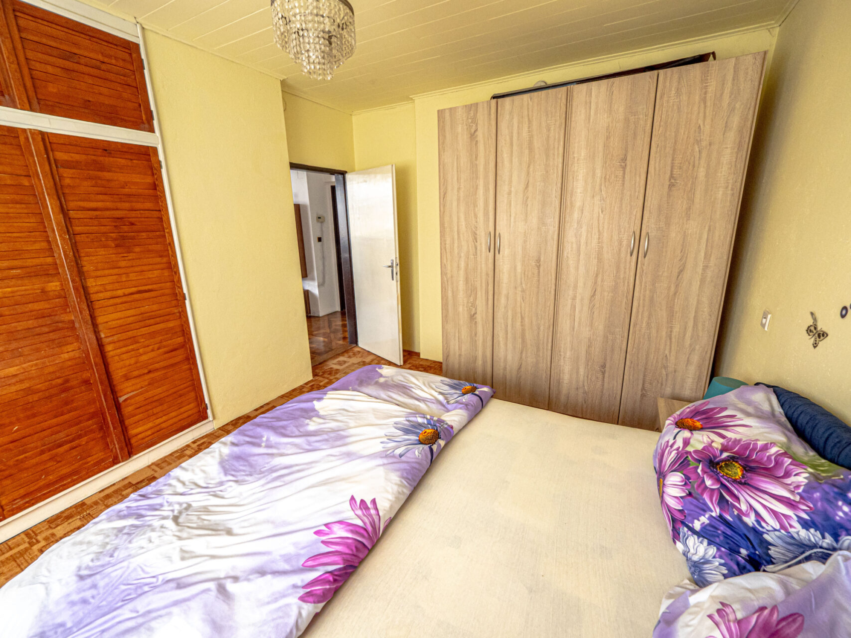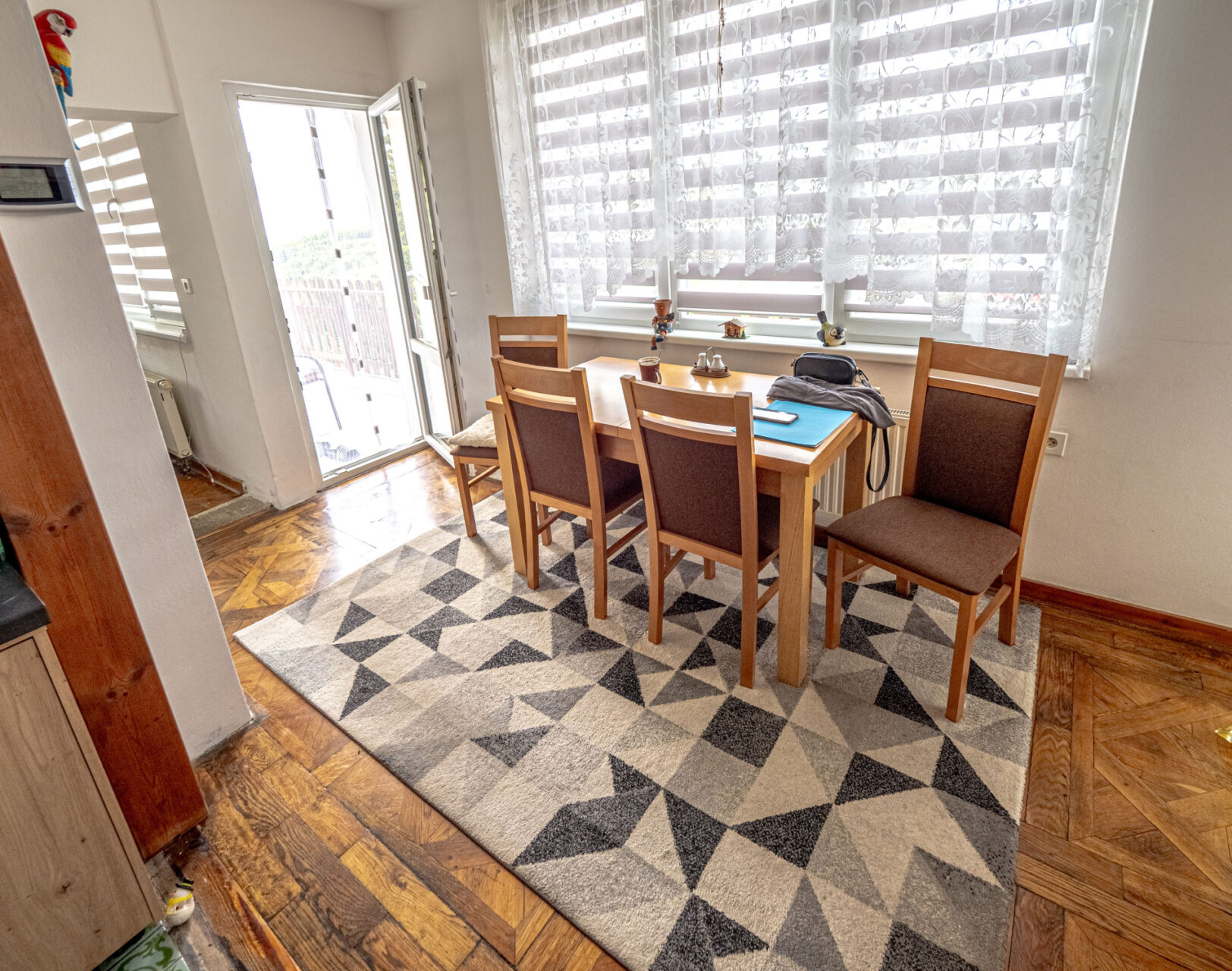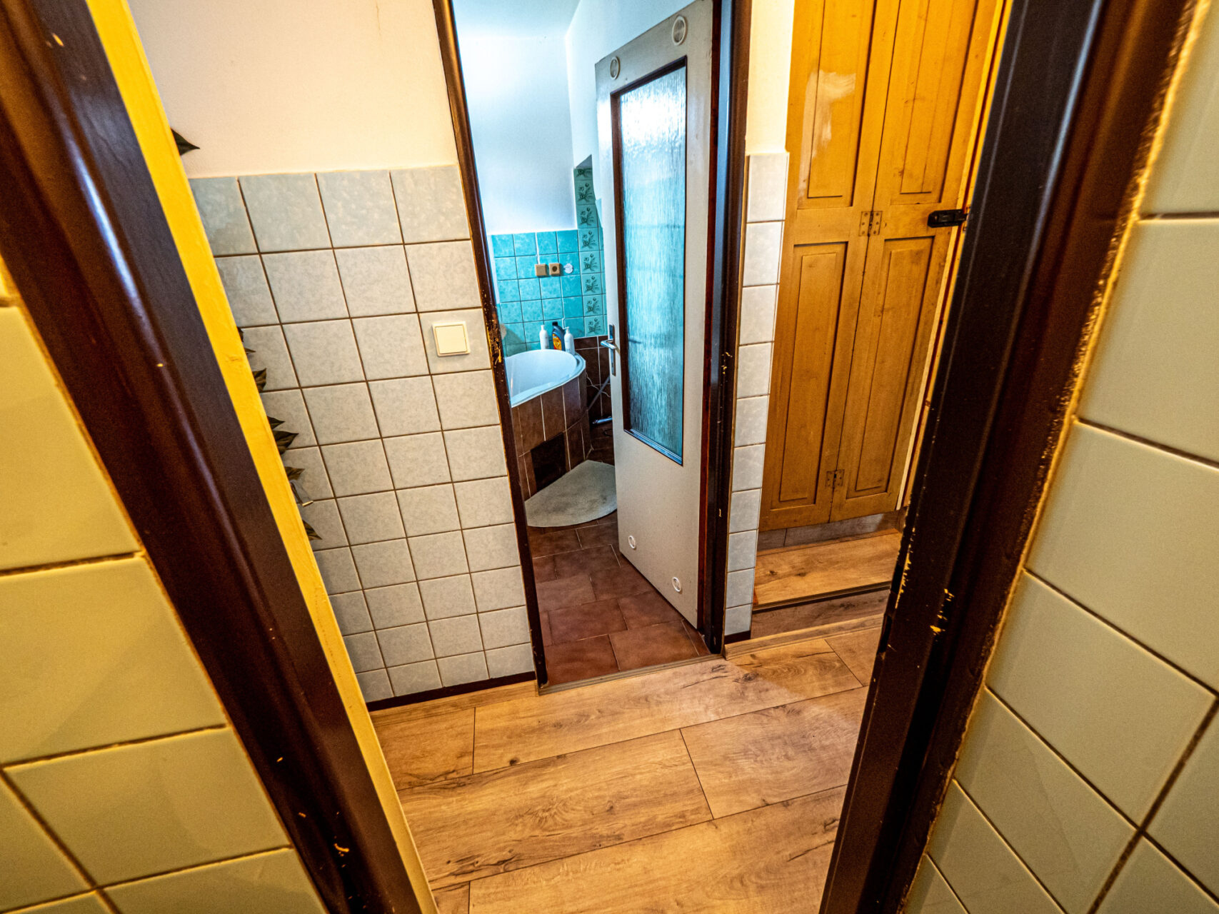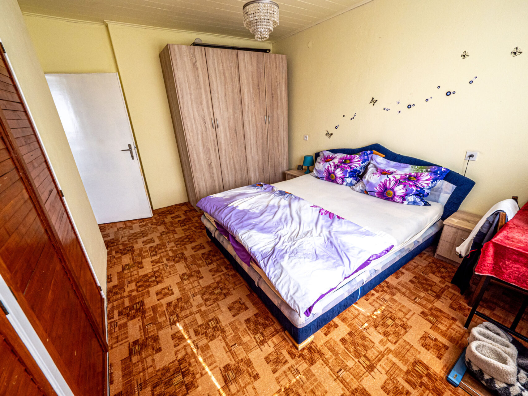 Horní patro je využito k bydlení, jsou zde kuchyň s kuchyňským koutem, obývací pokoj, ložnice, pokojík, koupelna, WC, sklad a úklidová komora a schodiště na prostornou půdu, která je zatím nevyužitá, ale je možné jí přebudovat na další obytné místnosti. Přes celou čelní stranu domu je prostorný balkón.