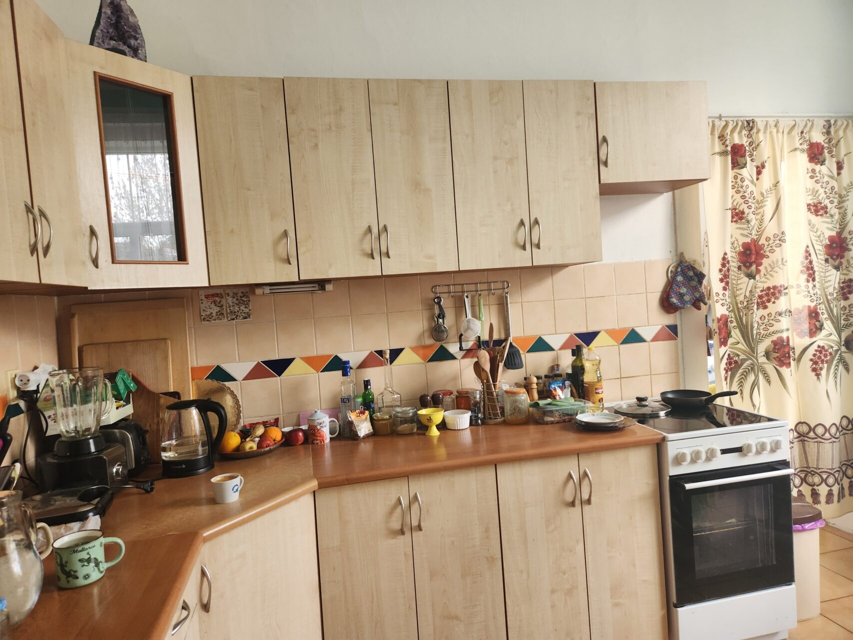 Interiér bytu zaujme velkorysou dispozicí se čtyřmi samostatnými pokoji a centrální kuchyní. Dominantou je balkón přístupný ze dvou stran, který přináší příjemné světlo a možnost klidného posezení s výhledem do okolní vilové zástavby.